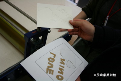 まず、紙版画のように、厚紙を切って原版を作ります。![]()