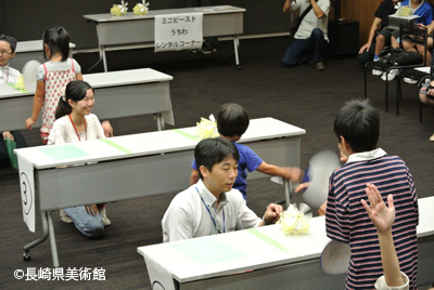 8月16日、10月9日(木)から開かれる「テオ・ヤンセン展-砂丘の生命体-」に先駆け、当館ホールにて「熱くあおげ!テオ・ヤンセン杯ミニビーストレース」が開催されました。
