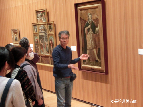 まずは当館コレクション展のテンペラ画作品の鑑賞からスタート。