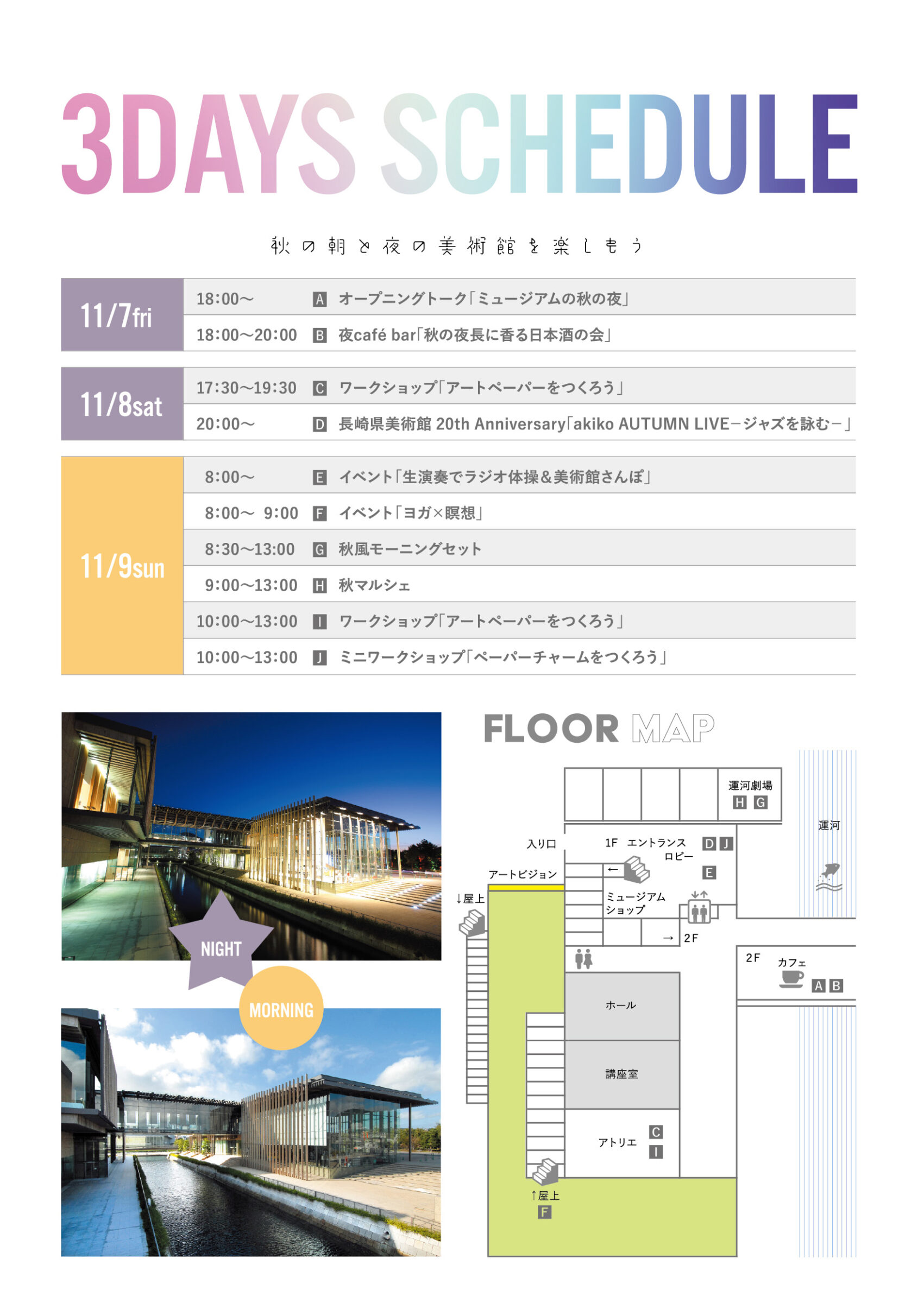 長崎県美術館では、「朝からはじまるさわやかな秋」「秋の夜長に楽しむアート」をテーマに大人から子どもまで楽しめるイベントを開催します。
