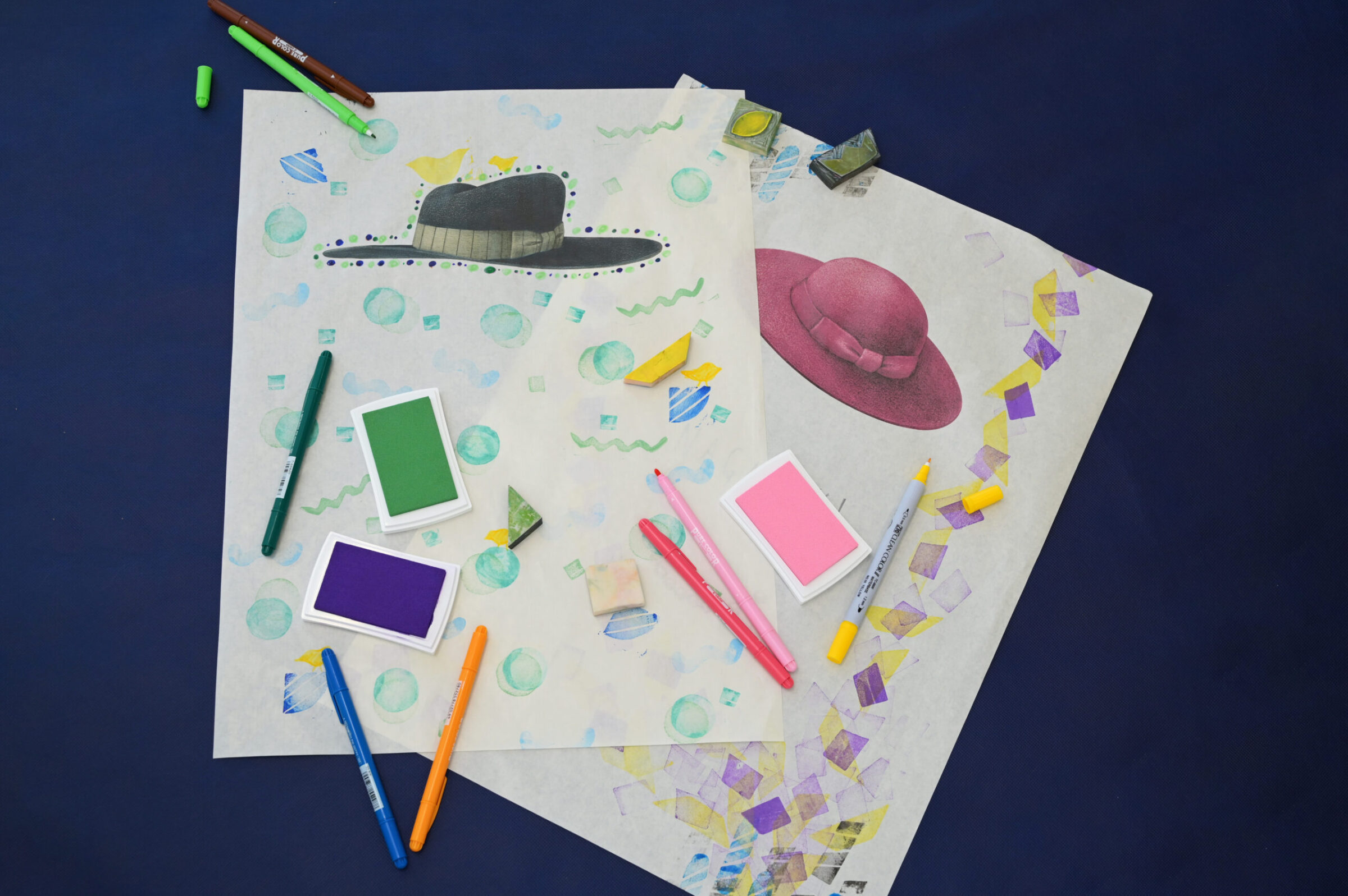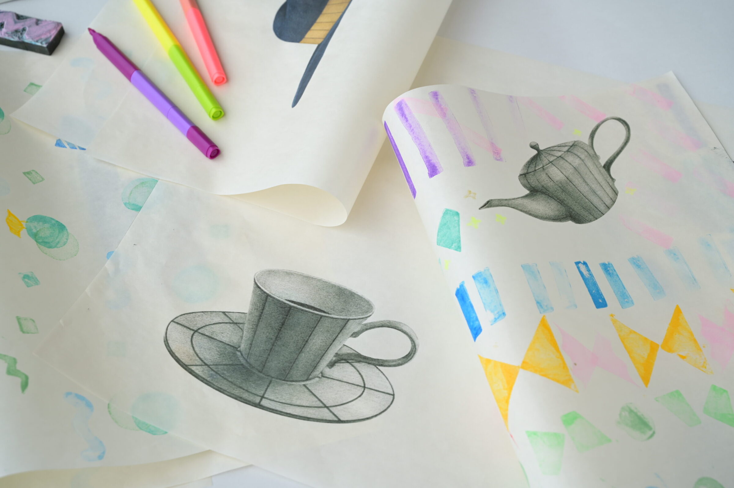 風合いのよい薄手の純白ロール紙に、スタンプやペンで装飾を加えて、自分だけのデザインをつくりましょう。