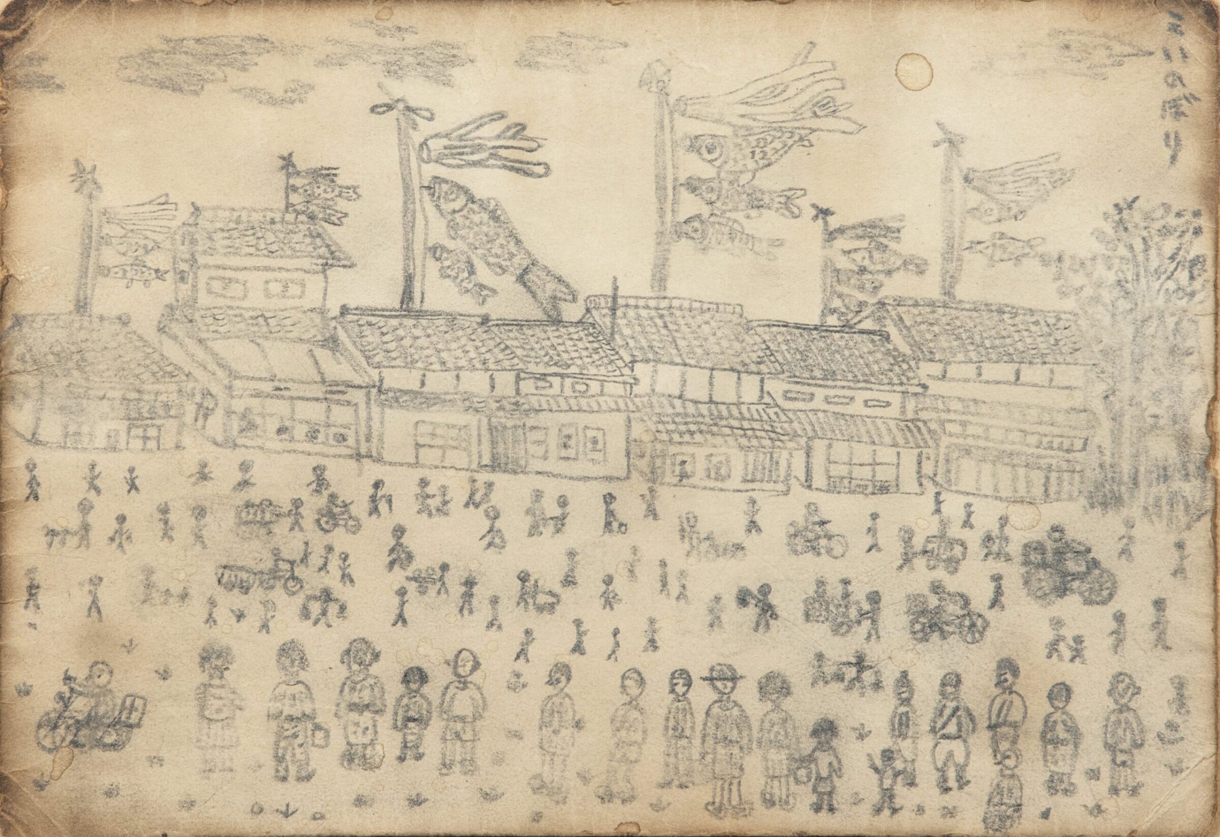 1956(昭和31)年、「東京の大丸」(現:大丸松坂屋百貨店)で清にとってはじめての大規模な展覧会が開催されました。本展は26日間で80万人が来場するなど大盛況をみせ、その後も全国各地で次々と個展が開かれるなど、日本列島は「山下清ブーム」に沸きます。こうしたなか、画家としての意識を高めてゆく清は、油性マジックペンを用いたペン画や油彩など、代名詞である貼絵のみならずさまざま技法に取り組み、創作の幅を広げてゆきます。