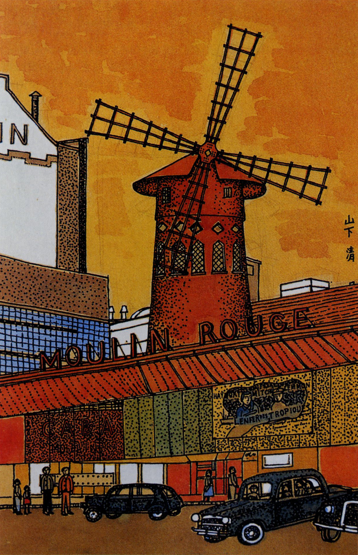 1961(昭和36)年、清は自身にとってはじめてのヨーロッパを中心とした海外諸国をめぐる旅に出かけました。約40日間におよぶ旅のなかで、清は20点余りのスケッチを描き上げており、これらは帰国後、貼絵やペン画、水彩画として結実していきます。この時期に制作された作品では、従来と比較して、より実景にせまる遠近感をもつ構図やきわめて細密な貼絵による色彩表現が確認でき、清の技術の到達点が示されています。
