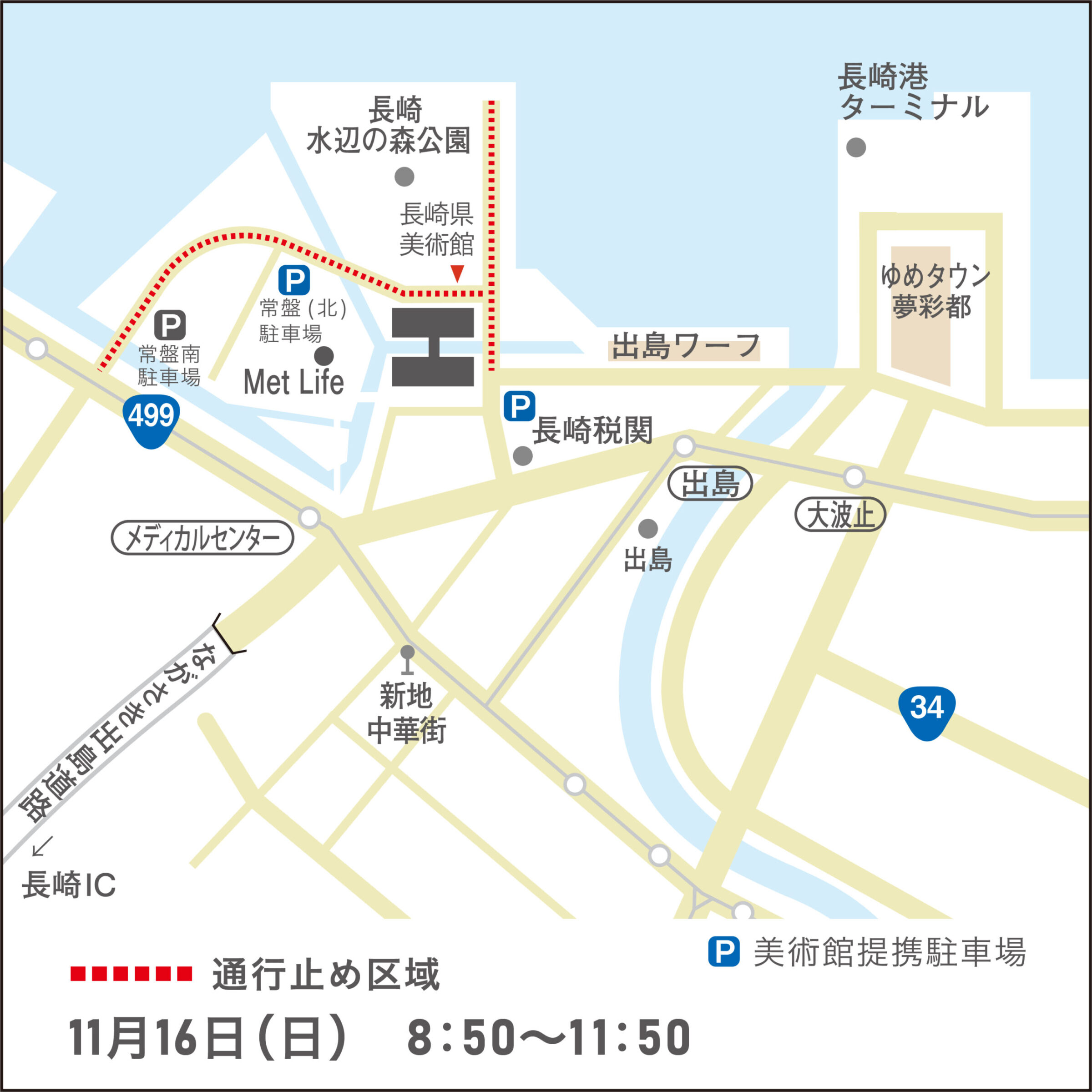 2025年11月16日(日)は長崎平和ハーフマラソンによる交通規制のため、県営常盤(北)駐車場、常盤(南)駐車場は、8:50~11:50の間出入庫できなくなります。また、クレインハーバー長崎ビル駐車場においては8:50~9:10の間利用不可となります。ご利用のお客様はご注意ください。