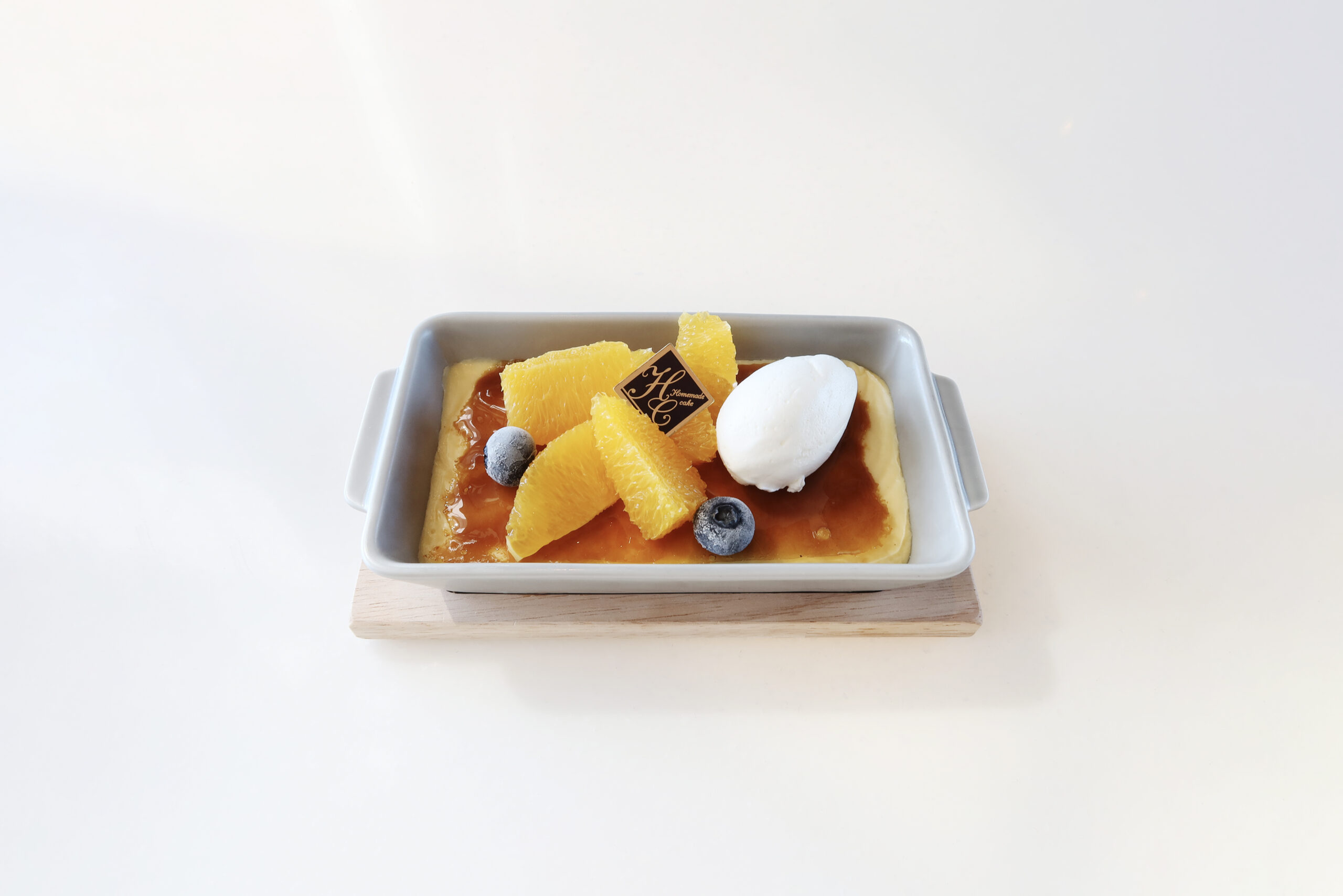 スペインに古くから伝わる「クレマ・カタラーナ」をアレンジしたスイーツです。なめらかなクリーム生地と季節ごとに変わるフルーツをお楽しみください。